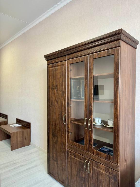 Situated in Taraz, Турист offers 5-star accommodation with a gyógyfürdő and wellness centre. Featuring a restaurant, the property also has a bar, as well as an indoor pool and a sauna. The hotel features both free WiFi and free private parking. At the hotel, rooms have a wardrobe. Complete with a private bathroom fitted with a shower and free toiletries, the rooms at Турист have a flat-screen TV and air conditioning, and certain rooms are fitted with a seating area. All rooms will provide guests with a fridge. Guests at the accommodation can enjoy a buffet breakfast. Speaking Azerbaijani, English, Russian and Turkish at the reception, staff are willing to help at any time of the day. Taraz Airport is 10 km from the property.
