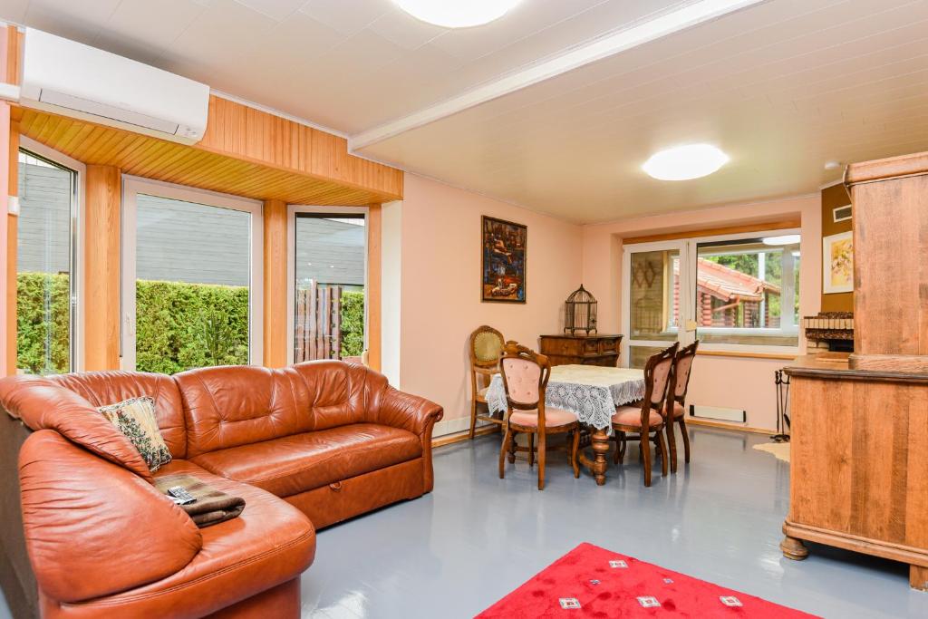 Situated within 2.2 km of Palanga Beach and 1.8 km of Palanga Church of the Assumption, Eimio Vila provides rooms with air conditioning and a private bathroom in Palanga. This chalet features free private parking, free shuttle service and free WiFi. Boasting family rooms, this property also provides guests with a sun terrace. At the chalet complex, every unit is fitted with a desk, a flat-screen TV, a private bathroom, bed linen and towels. Every unit is equipped with a coffee machine, while certain rooms have a fully equipped kitchen with a dishwasher and an oven. All units will provide guests with a wardrobe and a kettle. In the warmer months, you can make use of the barbecue facilities and dine on the private patio. The chalet has an outdoor fireplace and a children's playground. Popular points of interest near Eimio Vila include Palanga Sculpture Park, Palanga Concert Hall and Palanga Botanical Park. Palanga International Airport is 6 km from the property.